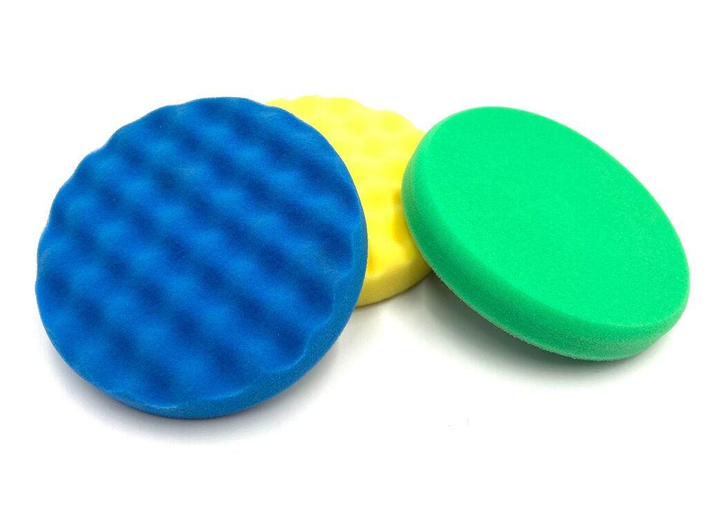 Uchycení na DA leštičku pomocí suchého zipu. Materiál nosné vrstvy je papír vyztužený latexem a materiál brusiva je pěnová hmota. Středně tvrdý a snadno čistitelný kotouč, který díky svému vaflovitému povrchu dobře zadržuje leštidlo (minimální stékání) a zároveň má dostatečný kontakt s leštěným povrchem.