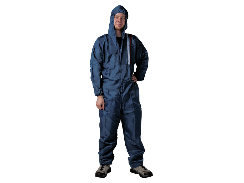 Oblek má kapuci pro ochranu hlavy a vlasů. Široké nohavice, díky kterým se pohodlně obléknete a svléknete i s nazutou obuví. Zapíná se na zip.