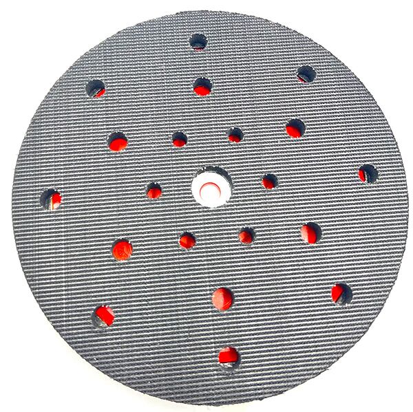 pro excentrické brusky. Vhodný pro všechny druhy broušení a leštění. Tento měkký podložný talíř má 20 otvorů a průměr 150mm. Závit pro uchycení na brusku je M8 nebo 5/16".
