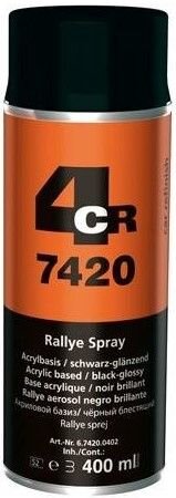 4CR7420 Černý sametové matný lak ve spreji je rychleschnoucí akrylový autolak. Je odolný povětrnostním vlivům a světlu, takže je vhodný pro rychlé a jednoduché opravné lakování automobilů, motocyklů, vozidel a autodílů.