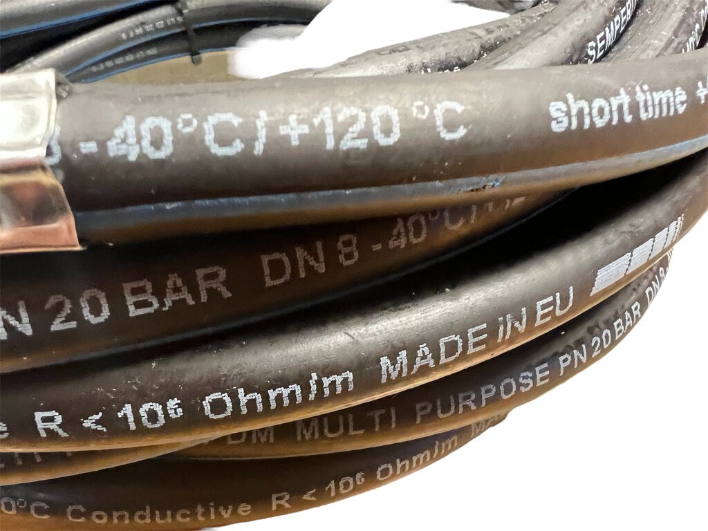 Provozní teplota -40°C až +120°C. Maximální tlak 20 bar v závislosti na teplotě. Vnější průměr 15mm, vnitřní 8mm, délka 10m. Hadice je vybavena rychlospojkami.