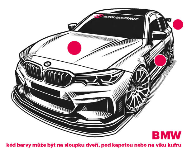 U vozů BMW najdete štítek s kódem barvy na sloupku dveří, v motorovém prostoru pod kapotou a nebo na vnitřní straně víka zavazadlového prostoru.