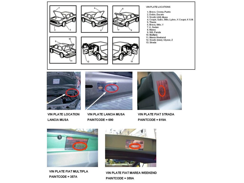 Může se stát, že z nějakého důvodu štítek s barvou chybí, v tom případě stačí, pokud se telefonicky obrátíte na libovolného prodejce nebo autorizovaný servis Fiat, kde Vám zdarma podle čísla VIN kód barvy sdělí.