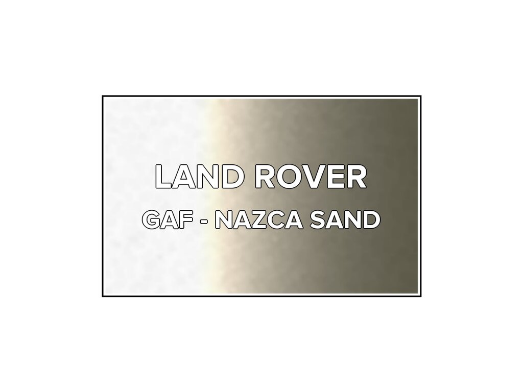 Přečíst článekBéžová metalíza Land Rover GAF Nazca Sand do pistole v balení o objemu 100ml. Barva NAZCA SAND přesně odpovídá autolaku GAF, používaného na vozech Land Rover v letech 2007-2010. Barva na všechny povrchy, snadná aplikace, 100% krytí.