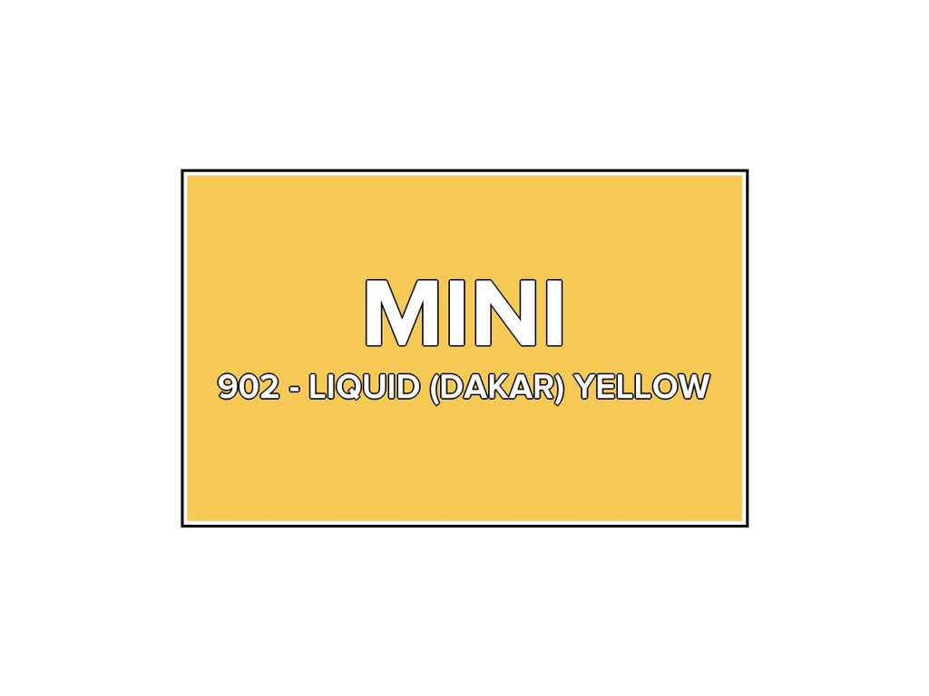 Přečíst článekŽlutá barva Mini 902 Liquid (dakar) Yellow do pistole v balení o objemu 100ml. Barva LIQUID (DAKAR) YELLOW přesně odpovídá autolaku 902, používaného na vozech Mini v letech 2000-2009. Barva na všechny povrchy, snadná aplikace, 100% krytí.