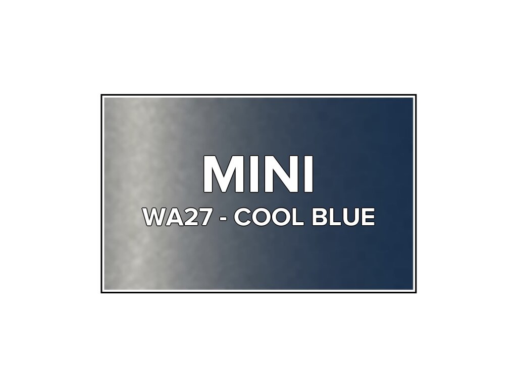 Přečíst článekModrá metalíza Mini WA27 Cool Blue do pistole v balení o objemu 100ml. Barva COOL BLUE přesně odpovídá autolaku WA27, používaného na vozech Mini v letech 2004-2008. Barva na všechny povrchy, snadná aplikace, 100% krytí.
