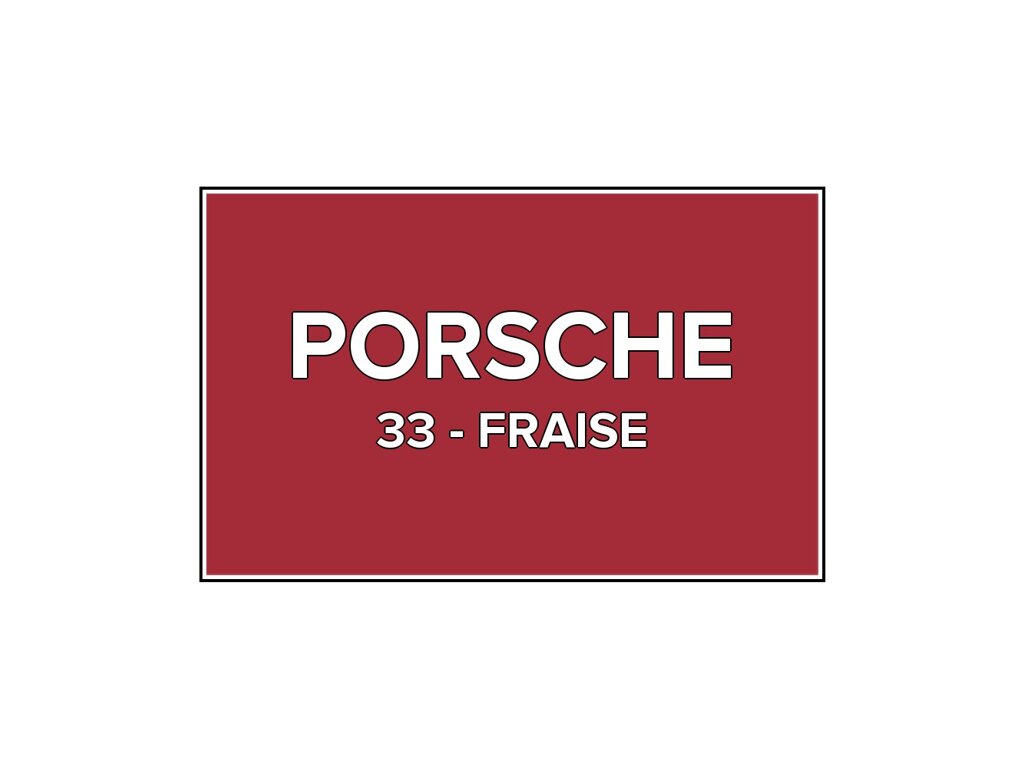 Přečíst článekČervená barva Porsche 33 Fraise do pistole v balení o objemu 100ml. Barva FRAISE přesně odpovídá autolaku 033, používaného na vozech Porsche v letech 1972-1973. Barva na všechny povrchy, snadná aplikace, 100% krytí.