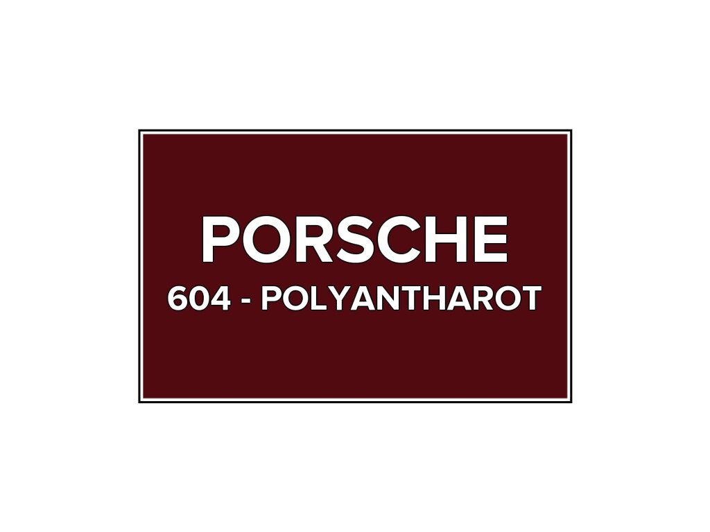 Přečíst článekČervená barva Porsche 604 Polyantharot do pistole v balení o objemu 100ml. Barva POLYANTHAROT přesně odpovídá autolaku 604, používaného na vozech Porsche v roce 1956. Barva na všechny povrchy, snadná aplikace, 100% krytí.