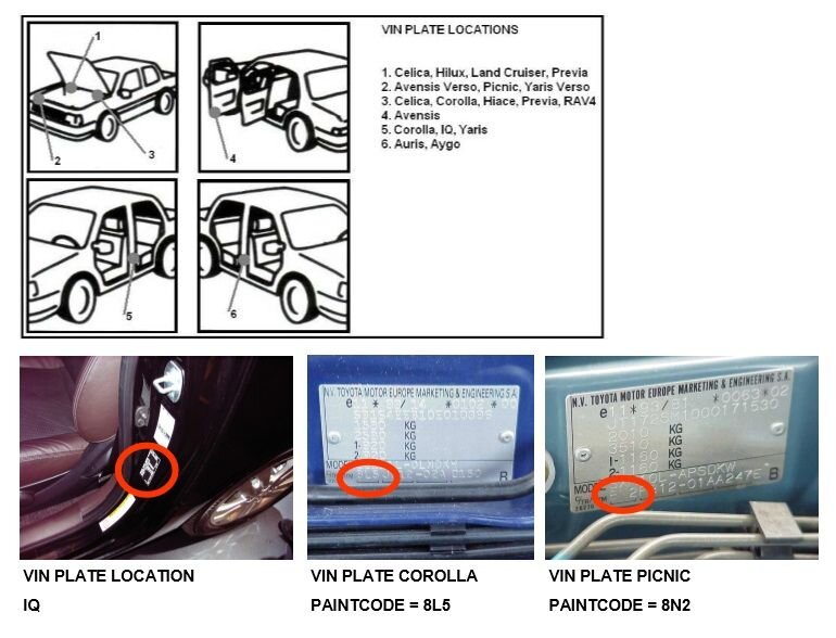 Může se stát, že z nějakého důvodu štítek s barvou chybí, v tom případě stačí, pokud se telefonicky obrátíte na libovolného prodejce nebo autorizovaný servis Toyota, kde Vám zdarma podle čísla VIN kód barvy sdělí.