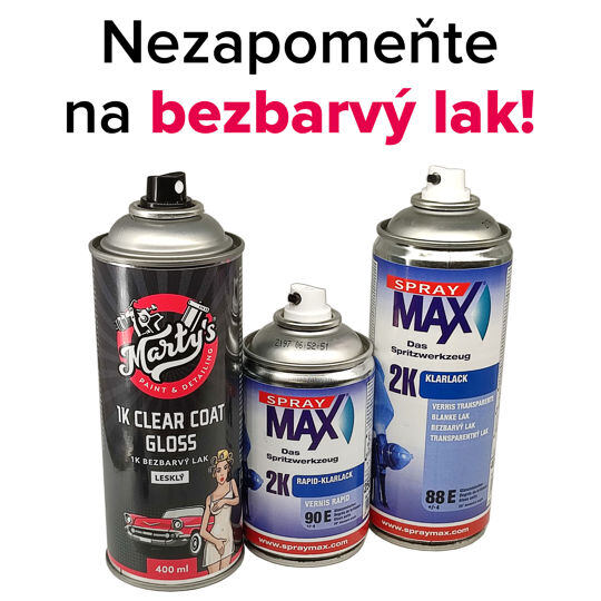 TIP: Metalíza pro maximální lesk a odolnost potřebuje následné přelakování bezbarvým lakem. Proto vám na metalické a perleťové barvy doporučujeme aplikovat ještě některý z těchto kvalitních čirých laků, jako je například lak Marty's, 2K sprej SprayMax nebo rychleschnoucí 2K SprayMax.