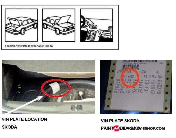U Škodovky najdete kód barvy v kufru u rezervního kola na papírovém štítku, štítek může být také umístěn v uživatelské knížce na první stránce.