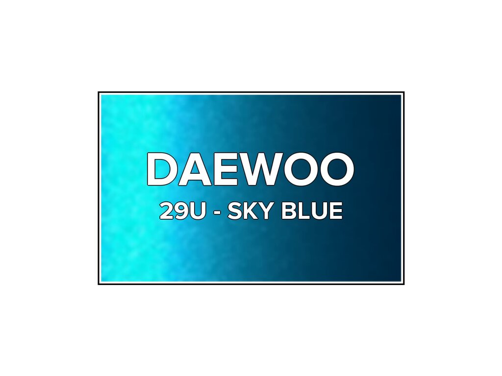 Přečíst článekModrá metalíza Daewoo 29U Sky Blue ve spreji o objemu 400ml. Barva SKY BLUE přesně odpovídá autolaku 29U, používaného na vozech Daewoo v letech 1998-2002. Barva na všechny povrchy, snadná aplikace, 100% krytí.
