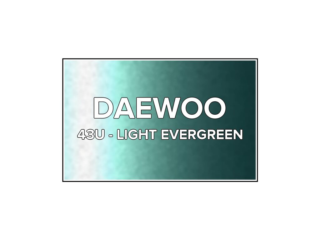 Přečíst článekZelená metalíza Daewoo 43U Light Evergreen ve spreji o objemu 400ml. Barva LIGHT EVERGREEN přesně odpovídá autolaku 43U, používaného na vozech Daewoo v letech 1996-2004. Barva na všechny povrchy, snadná aplikace, 100% krytí.