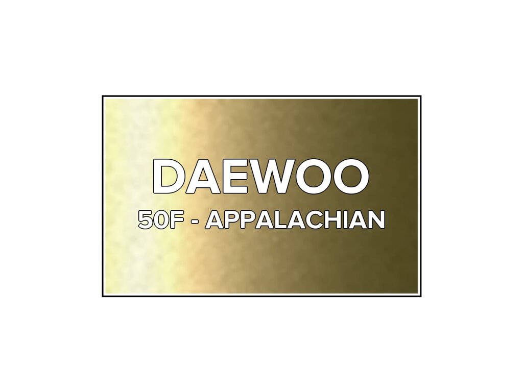 Přečíst článekŽlutá metalíza Daewoo 50F Appalachian ve spreji o objemu 400ml. Barva APPALACHIAN přesně odpovídá autolaku 50F, používaného na vozech Daewoo v roce 2005. Barva na všechny povrchy, snadná aplikace, 100% krytí.