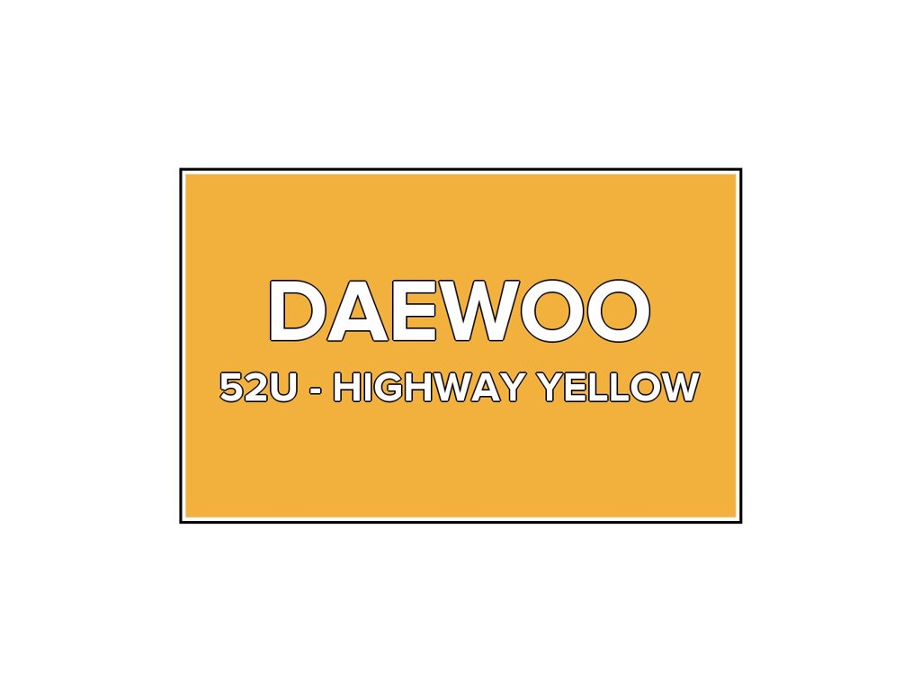 Přečíst článekŽlutá barva Daewoo 52U Highway Yellow ve spreji o objemu 400ml. Barva HIGHWAY YELLOW přesně odpovídá autolaku 52U, používaného na vozech Daewoo v letech 1996-2008. Barva na všechny povrchy, snadná aplikace, 100% krytí.