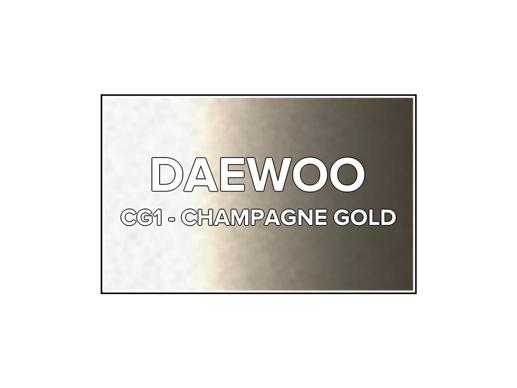Přečíst článekBéžová metalíza Daewoo CG1 Champagne Gold ve spreji o objemu 400ml. Barva CHAMPAGNE GOLD přesně odpovídá autolaku CG1, používaného na vozech Daewoo v letech 1998-1999. Barva na všechny povrchy, snadná aplikace, 100% krytí.