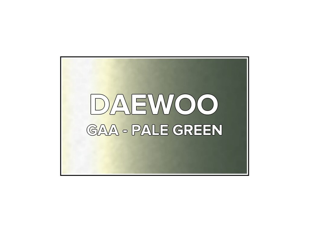 Přečíst článekZelená metalíza Daewoo GAA Pale Green ve spreji o objemu 400ml. Barva PALE GREEN přesně odpovídá autolaku GAA, používaného na vozech Daewoo v letech 1999-2000. Barva na všechny povrchy, snadná aplikace, 100% krytí.