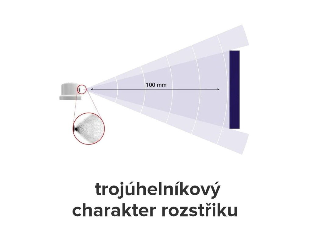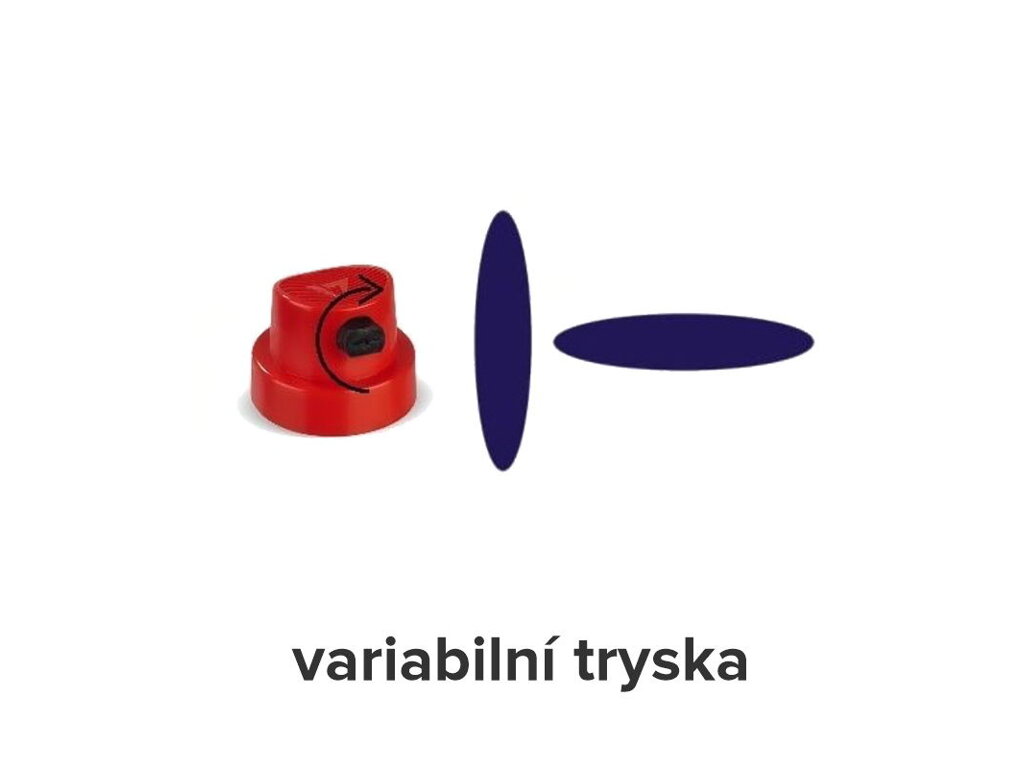 Naše spreje jsou vybaveny speciální variabilní tryskou, která umožňuje nastavit trojúhelníkový rozstřik barvy do libovolné vodorovné nebo svislé pozice.