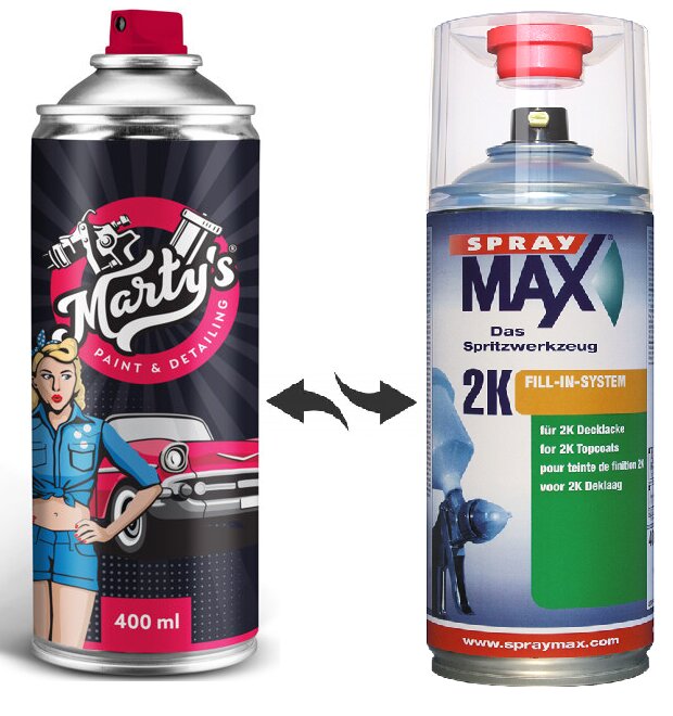 Namíchaný odstín laku je dodáván ve speciálním spreji, ve kterém jsou až do prvního použití dvě složky umístěny samostatně - proto se této barvě také říká dvousložková, nebo zkratkou 2K.