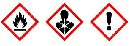 H222-H229 - Extrémně hořlavý aerosol. Nádoba je pod tlakem: při zahřívání se může roztrhnout.