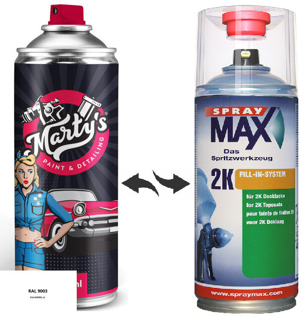 Namíchaný odstín laku je dodáván ve speciálním spreji, ve kterém jsou až do prvního použití dvě složky umístěny samostatně - proto se této barvě také říká dvousložková, nebo zkratkou 2K.