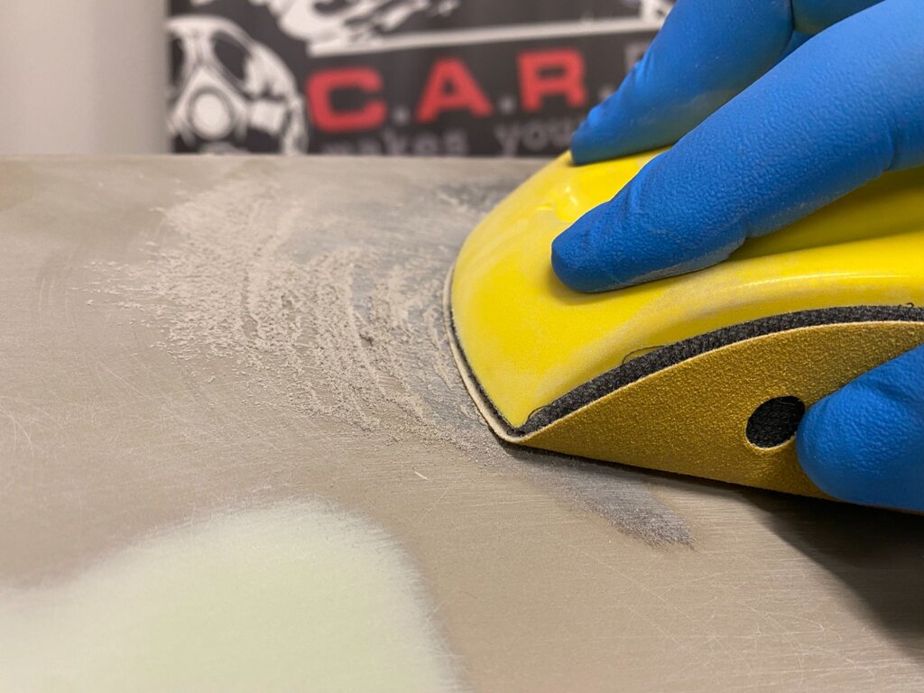 již od zrnitosti P120 a nezanáší brusný papír, není tedy třeba sahat k hrubšímu brusivu a rýhy které toto způsobí následně dále zabrušovat. Výsledkem je hladký povrch bez pórů, tedy takový, který lze okamžitě překrýt plniči a přistoupit k dalším krokům v opravě.