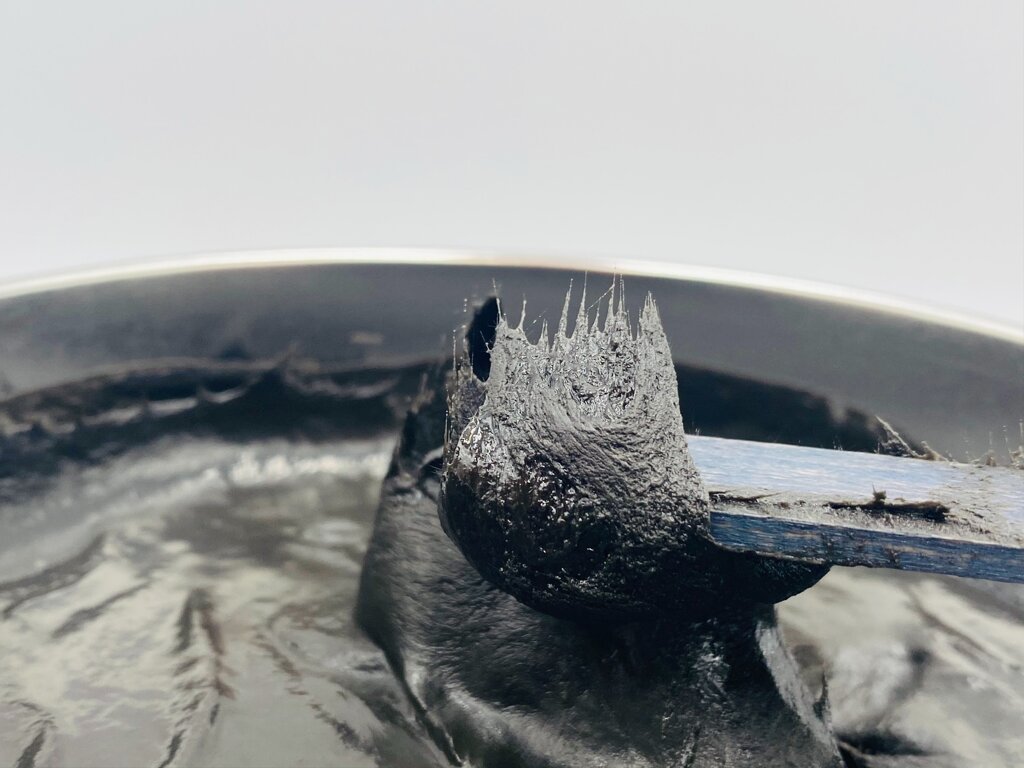 je typický svou černou barvou. Tento tmel se používá na tmelení větších nerovností nebo na zpevnění míst, která byla tepelně opracovaná - typicky po zásahu klempíře. Oproti tmelům se skelným vláknem se tento tmel daleko lépe tvaruje díky své krémové konzistenci.