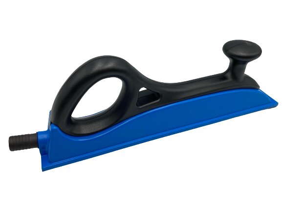 Má tvarované plastové rukojeti pro snadné a pevné uchycení, díky kterému je práce s ním pohodlná s maximálním rozvržením a přesností síly. Měkké pěnové polstrování a zároveň tvrdá kovová podložka zaručují rovnost broušeného podkladu (například tmelů,...).