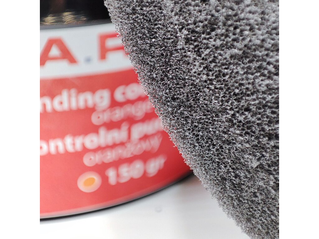je velice jednoduchá. Aplikační houbou snadno nanesete oranžový pudr na plnič nebo základ v průběhu broušení, ten ulpí na miniaturních rýhách, nerovnostech, dírkách i škrábancích a při následném broušení se tyto nedokonalosti odhalí. Tím je zajištěno dosažení ideální rovnosti broušeného podkladu.