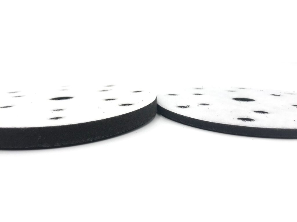 Nabízíme dvě tloušťky - úzkou 5mm a tlustou 10mm. Obě dvě mezipodložky jsou 150mm veliké, takže vhodné pro klasické brusné kotouče. Odsávání probíhá přes 15 děr, které pomáhají odvádět nejen prach, ale i teplo a zajišťují tak větší šetrnost celého procesu broušení.