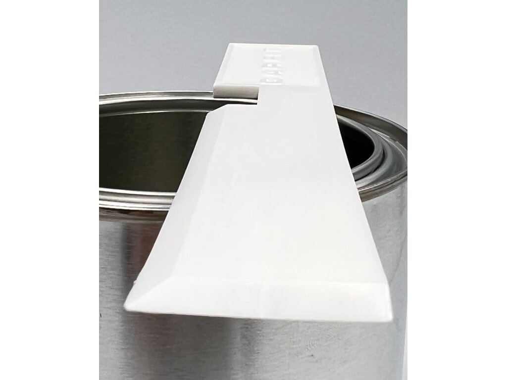 Speciální plastová špachtle, která má zploštělé hrany a speciální výkus zapadající přímo do plechovky, je ideálním pomocník pro důkladné promíchání barvy v plechovce.