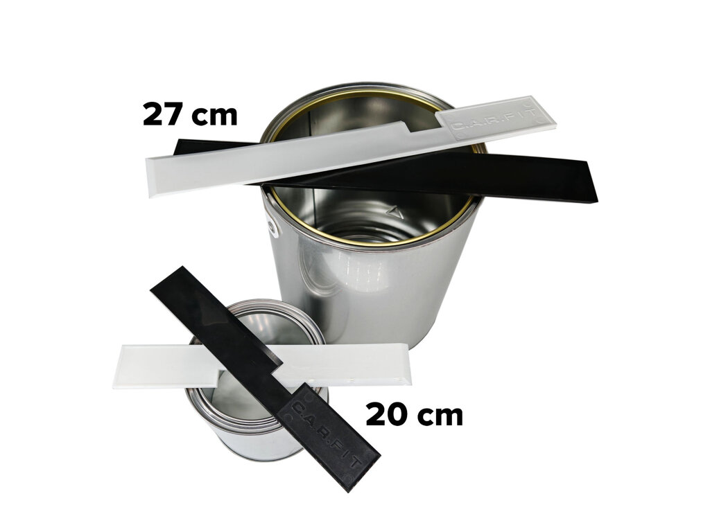 Menší míchátka o velikosti 20cm jsou ideální pro plechovky do 1l, větší míchátka o délce 27 cm jsou ideální pro větší plechovky a nádoby.