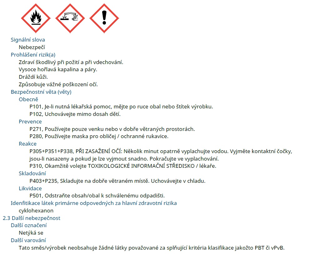 Flam. Liq. 2; H225, Vysoce hořlavá kapalina a páry.