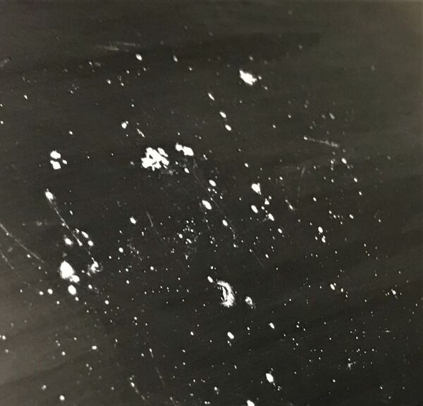 Níže lze vidět detailní foto poškrábaného laku a vytmelené oděrky po nanesení 1k NC tmelu: