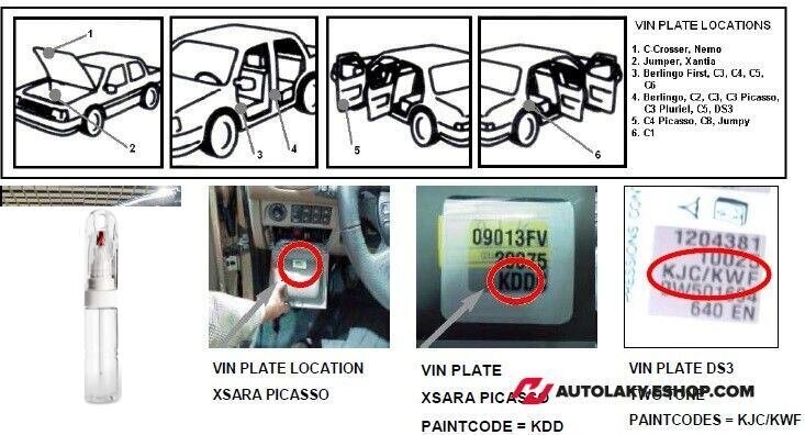 La Citroen veți găsi codul de culoare pe montantul portierei șoferului sau pasagerului, acesta poate fi localizat și sub volan, pe capacul cutiei de siguranțe sau în compartimentul motorului, acest lucru fiind cel mai frecvent la vehiculele comerciale.