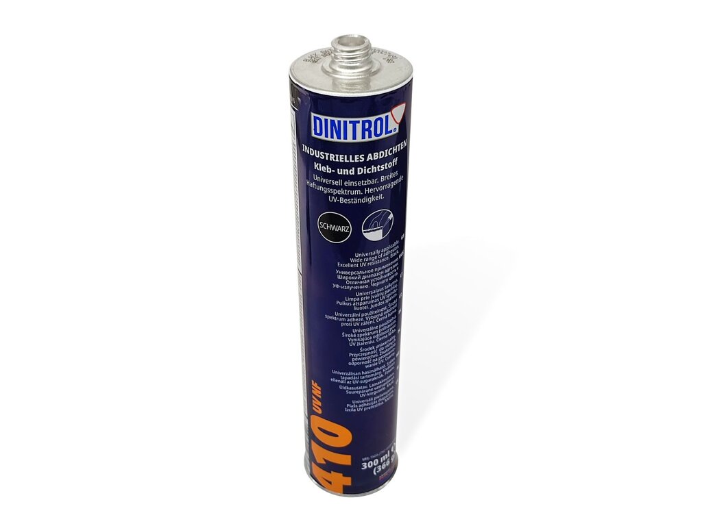 Polyuretanová lepící a těsnící hmota Dinitrol 410 UV NF má vynikající přilnavost na většinu materiálů, je rychle tvrdnoucí, v konečném stavu stále elastický a odolný proti UV záření.