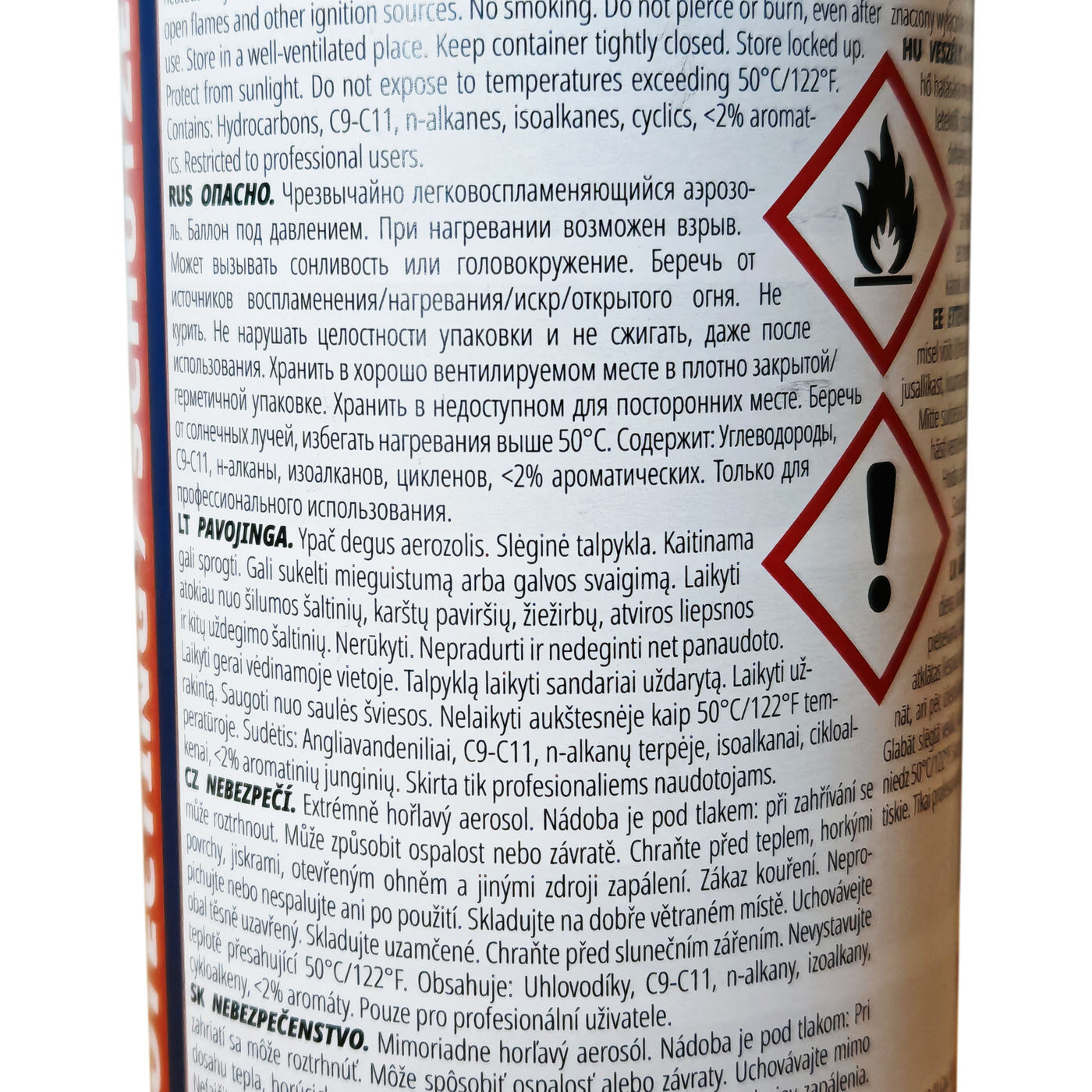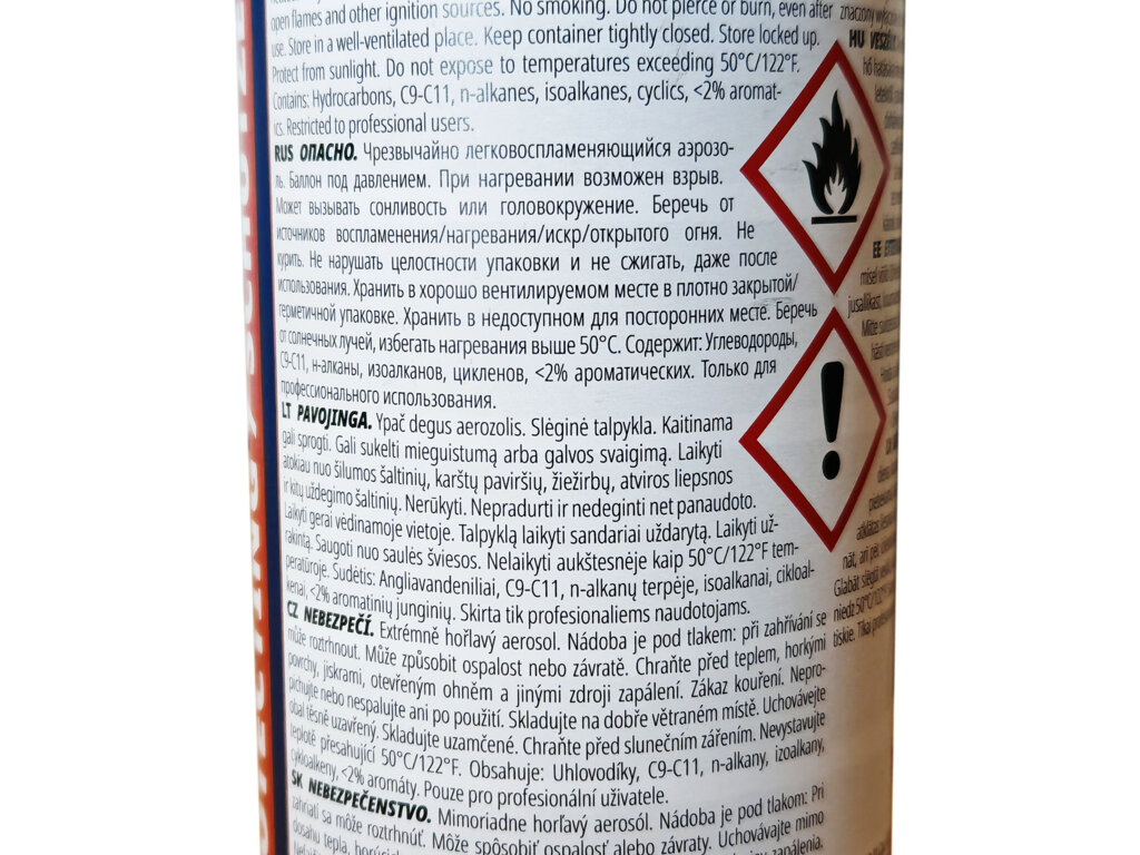Po použití spreje je nutno jej obrátit dnem vzhůru a trysku krátce prostříknout hnacím plynem (jinak dojde k jejímu ucpání ztvrdlým materiálem).