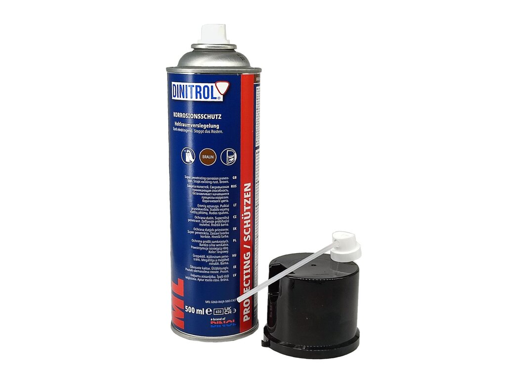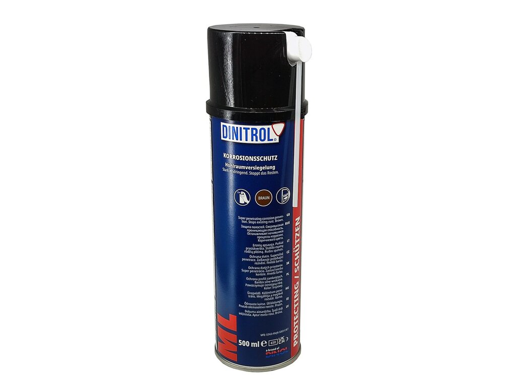 je určen pro ochranu uzavřených dutin. DINITROL ML ve spreji má vysokou penetrační schopnost. Po aplikaci vytvoří na povrchu slabý a měkký ochranný film hnědé barvy, který poskytuje špičkovou ochranu vozidel v provozu.