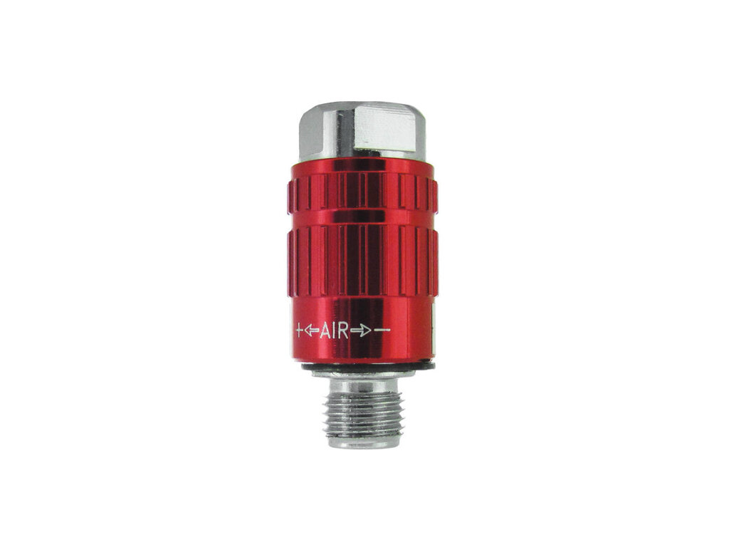 Cenově výhodný regulátor vzduchu, určený pro stříkací pistole a pneumatické nářadí. Regulátor není vybaven manometrem, který by ukazoval nastavený tlak.