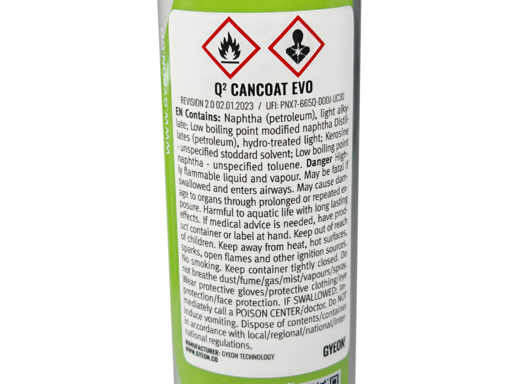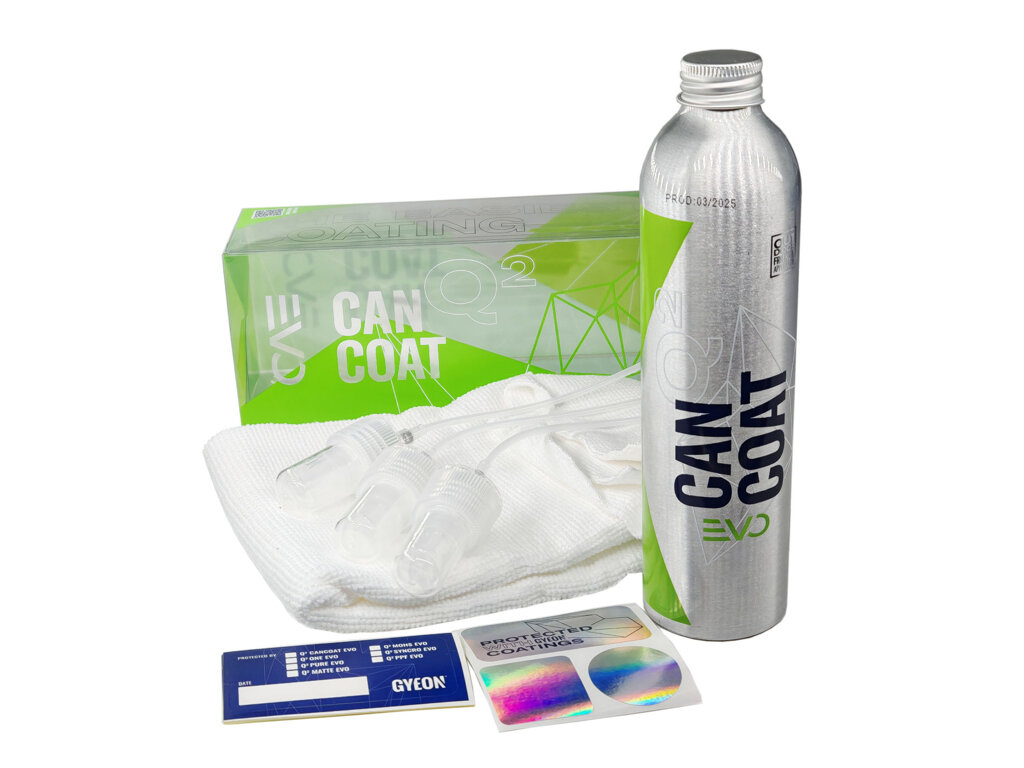 Přípravek Gyeon Q² CanCoat EVO jako vysoce všestranný a nejjednodušeji aplikovatelný keramický povlak (založeny na SiO2) ve sprejové formě, určený pro ochranu a údržbu všech typů vozidel. Je vhodný téměř na jakýkoliv povrch - skvěle funguje přímo na karoserii, na plastech, na discích kol nebo i na fóliích.