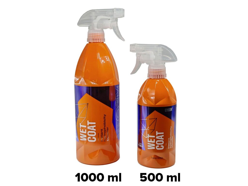 Čistič a dekontaminátor Q2M Wet Coat je dostupný ve dvou velikostech balení: menší má objem 500 ml a větší 1000 ml.