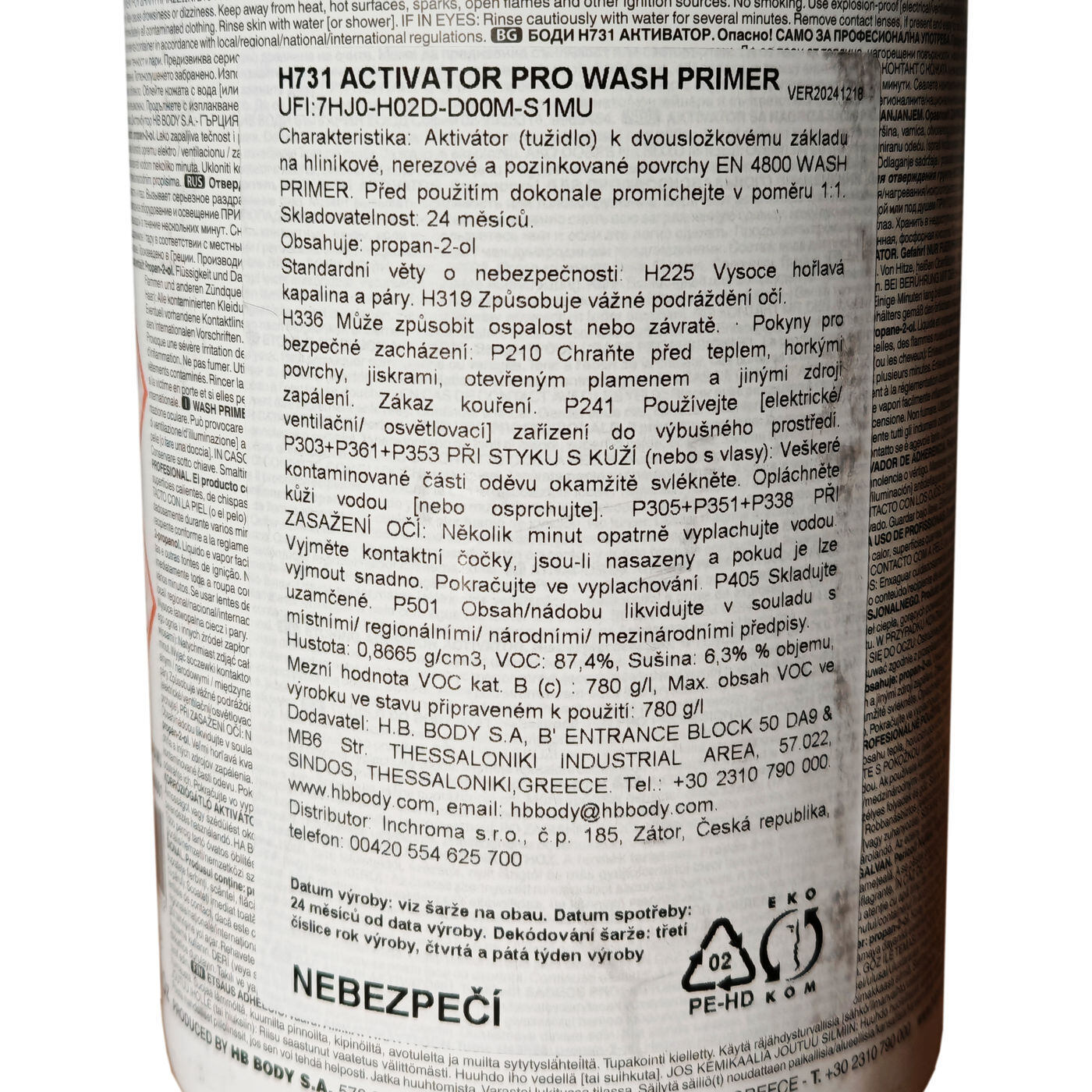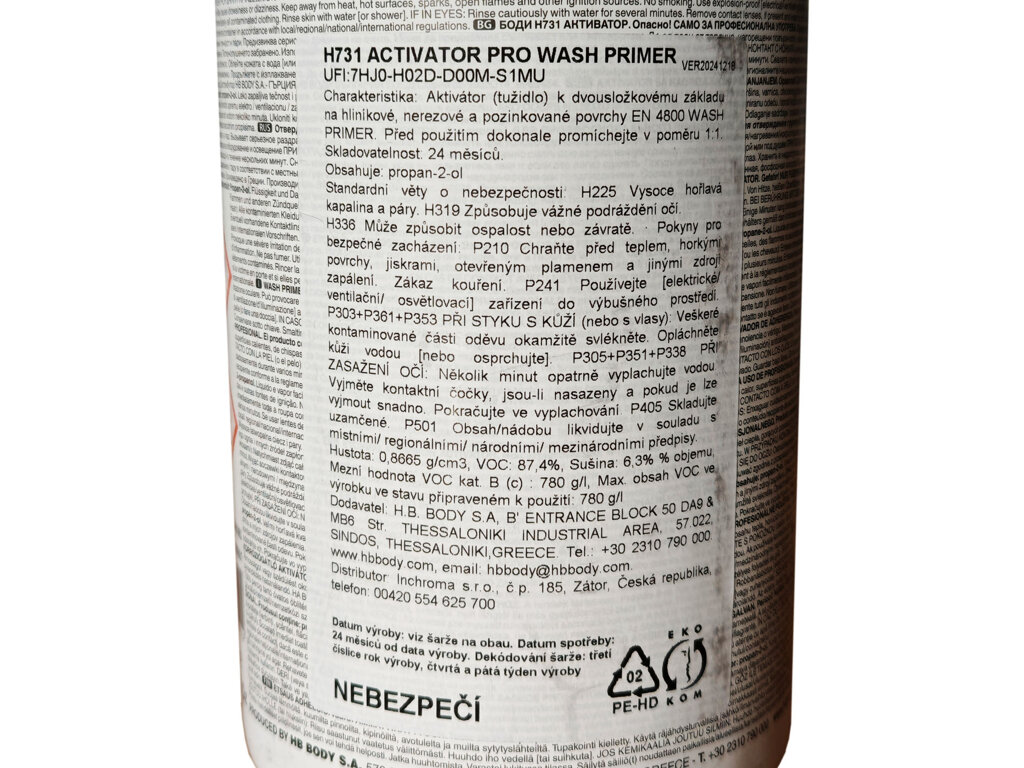 Pozor: Wash primer P960 je dvousložkový! Před jeho použitím je potřeba primer P960 smíchat v poměru 1:1 s aktivátorem H731.