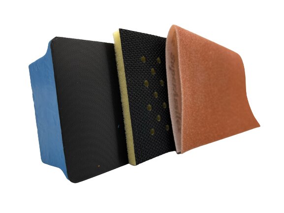 Měkká mezipodložka se suchým zipem, ideální kombinace s Kovax Assilex brusný blok. Vhodná na ruční opracování zaoblených ploch. Dobře se přizpůsobuje různým rádiům a členitostem.
