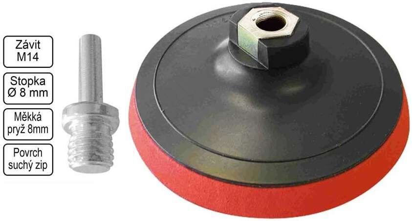 vhodný na všechny typy leštiček se závitem M14. V balení je i šťopka pro uchycení unašeče na vrtačku. Klasický podložný talíř, na který lze jednoduše připevnit kotouče pomocí suchého zipu. Odolný až do 12.500 ot/min.