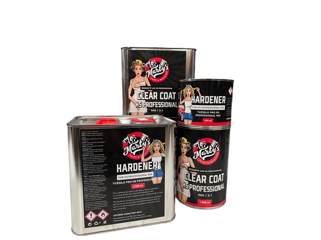 Špičkový bezbarvý dvousložkový lak do stříkací pistole Marty's HS Professional 900 odpovídá nejvyššímu standardu High Solid a vyznačuje se velmi vysokým obsahem nejkvalitnějších pevných látek. Výsledný povrch laku je tvrdý, odolný poškrábání a povětrnostním vlivům, UV záření a otryskání od odletujících kamínků.