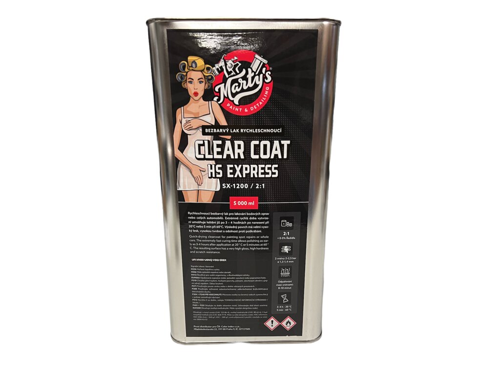 Rychleschnoucí lak Marty's HS Express je ideální pro lakování bodových oprav i celých automobilů. Extrémně rychlá doba vytvrzení umožňuje leštění již po 3 - 4 hodinách po nanesení při teplotě 20 °C nebo dokonce po pouhých 5 minutách při teplotě 60 °C!