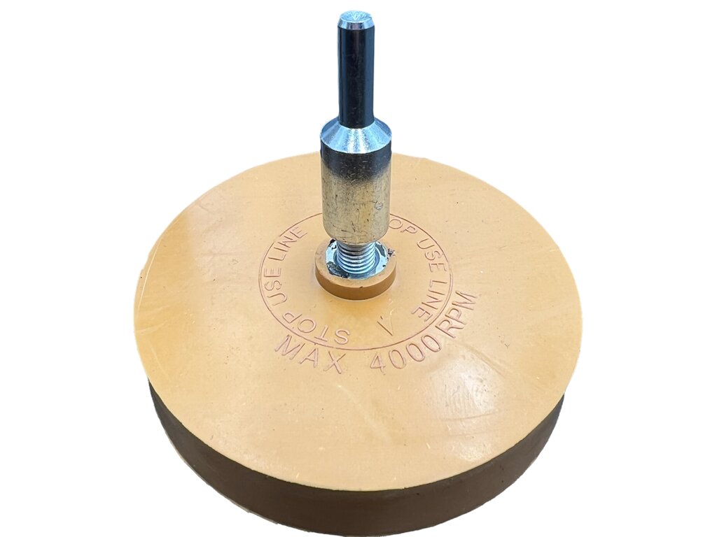 Šťopku nasadíte na gumový kotouč, vše upevníte do vrtačky a můžete začít s odstraňováním samolepek.