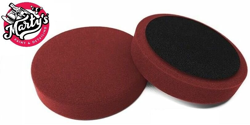 Profesionální tuhý červený detailingový leštící kotouč Marty's PROFI Cutting 150x30mm s unikátní strukturou německé pěny pro efektivní odstranění škrábanců po broušení.