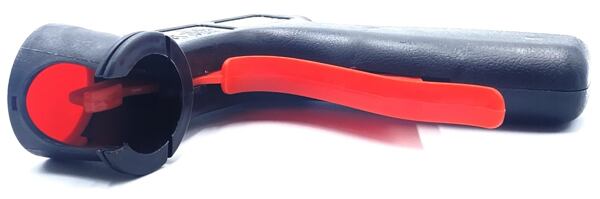 Rukojeť je charakteristická dvěma barvami - černým tělem a výraznou červenou spouští, najdete jí tedy vždy i v tmavých zásuvkách nebo boxech na nářadí.