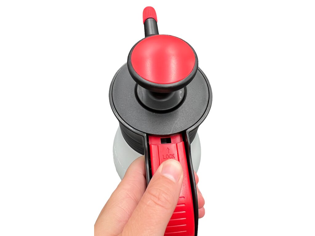 je uzamykatelná spoušť, díky které ji nemusíte při čištění držet zmáčknutou. Spoušť rozprašovače stačí stisknout, uzamknout a můžete bez námahy rozprašovat a nanášet pěnu na velké plochy.